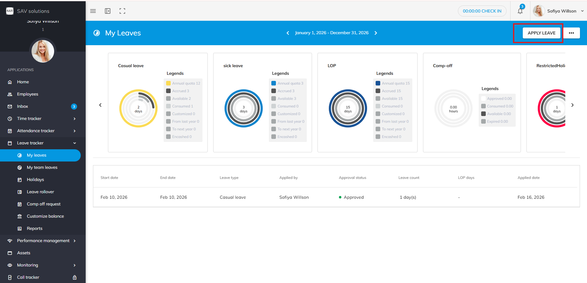 - Click the Apply Leave button.