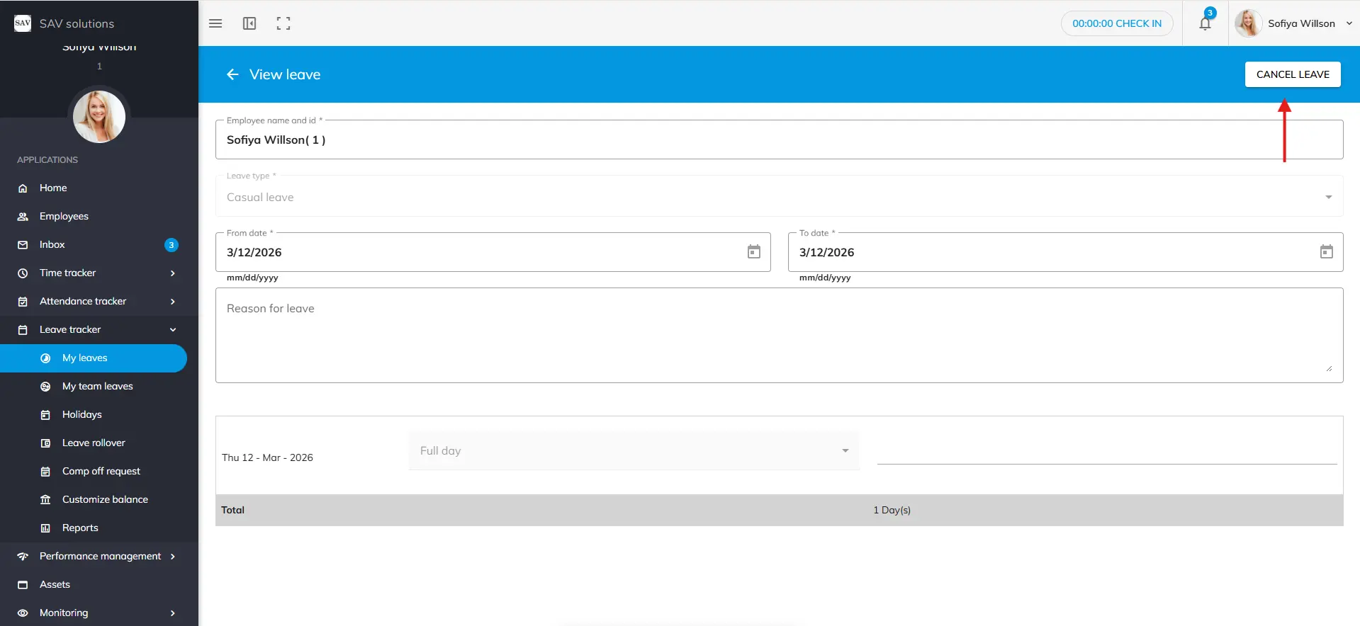- Click the Cancel Leave button in the top-right corner.